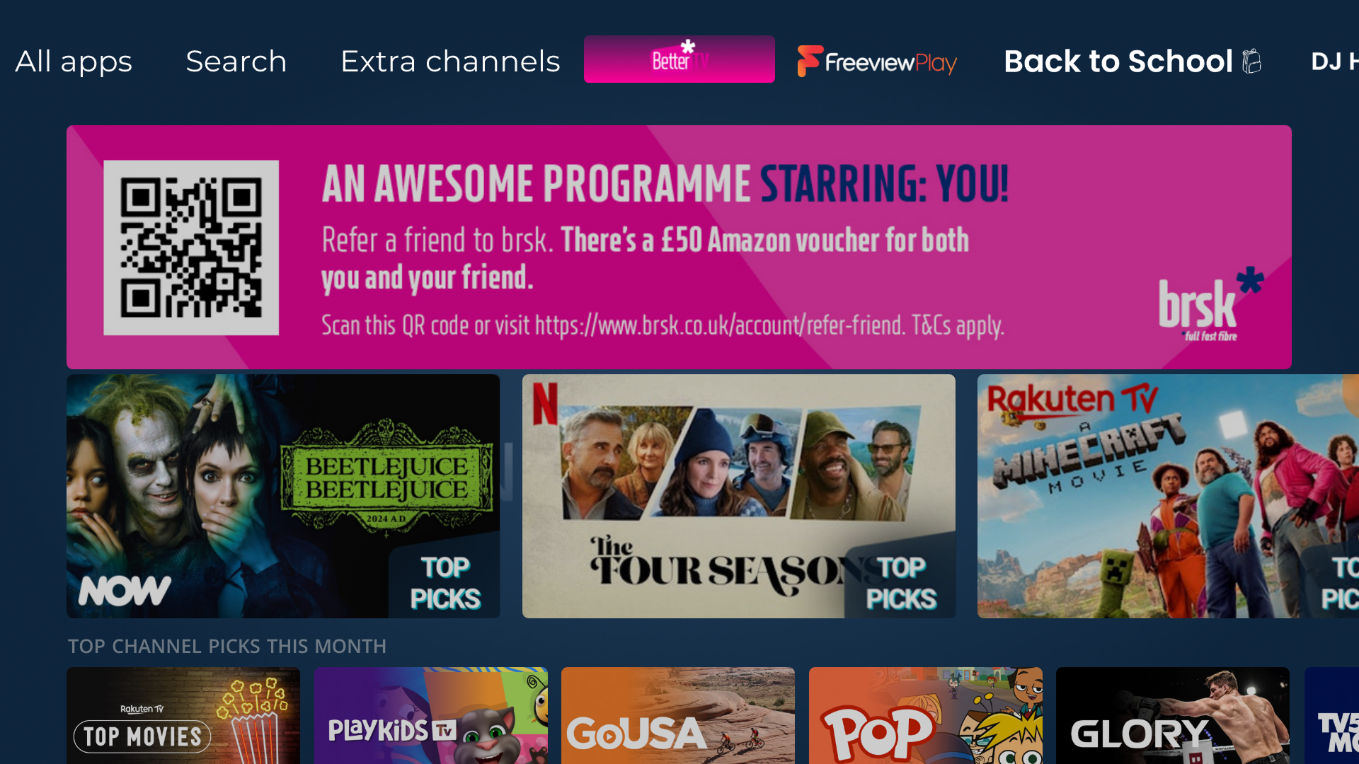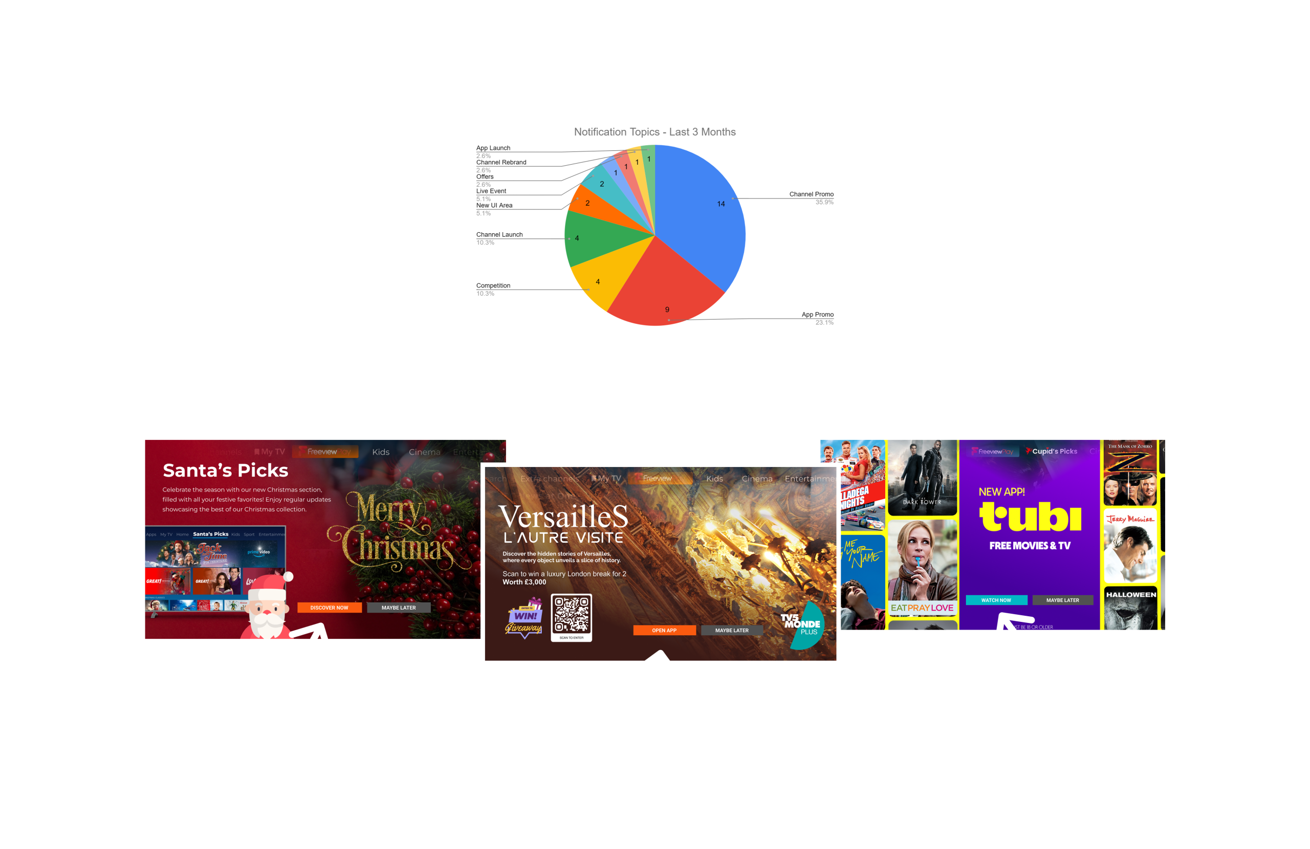 We use notifications to inform viewers about new channels, apps, live events and other updates. We also run campaigns for offers and competitions – e.g. refer a friend offers, merch from channel and app providers, tickets to events, and vouchers, etc.